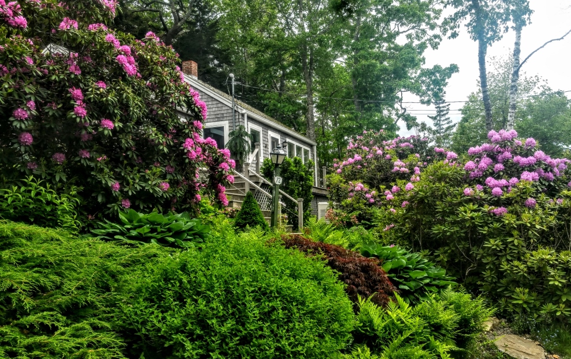 The spectacular Rhododendron Week at Paradise Cottage is now available for someone new to enjoy! It is the week of June 13 – 19 with departure on the morning of the 20th. During this week you will be immersed in the large pink or lavendar pompoms that line the length of the front porch and will join in all your views. Call 207-633-6093 to reserve it for yourself!